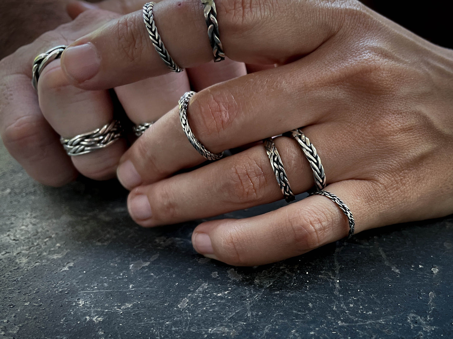 With no one allowed to enter the prison to bring materials and very few sales due to the lack of tourism, there were very few orders for the Mules team to work on. Instead of stagnating and resigning to their cells, our Mules team recycled old silver pieces of jewelry into long strands of wire and began to learn how to weave them together. The Wired collection is a unique combination of braiding, twisting, and interweaving sterling silver wires of different thicknesses.